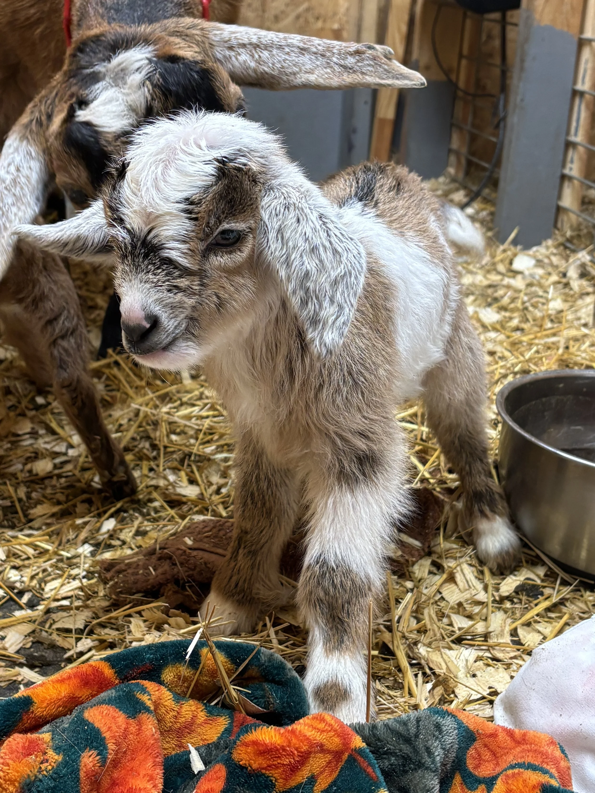 Tres Leches is a striking buck registered as LONGWELL LEGACY BREEDS TRES LECHES, born June 15, 2023. His black and tan tricolor pattern, large white patches, and white crown give him plenty of visual appeal, while his pedigree brings together a strong concentration of proven Kinder genetics. He is sired by Happy Jack Kinders Kemosabe and out of Happy Jack Kinders Violet, with influential lines behind him including Camp Davis Ruger, Pricker Patch Farm Cole, Tickleweed Hill Farm, Gray J, Bramble Patch, and Zederkamm.